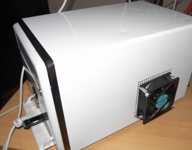 ファンを外付けすることで、多少見た目は悪いかもしれませんが、熱による寿命の影響(とくにHDD)を考えると、改良と言えるでしょう。